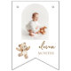 Celebrate your child’s 1st birthday with this adorable teddy bear photo party bunting banner. Featuring a cute bear theme and customizable photo flags, this banner is perfect for baby birthday décor, kids party backdrops, and sweet celebration setups. Personalize it with your child’s name, age, and event date to match your party style. Lightweight, stylish, and unforgettable — the perfect finishing touch for a teddy-themed birthday party!