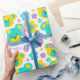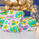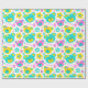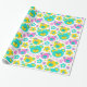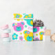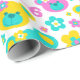 Fun pastel shades pink and aqua teal blue green teddy bear faces and graphic flowers repeat pattern birthday wrapping paper, perfect for a girls 6th Birthday. Personalise with your own birthday girls name and single digit age, currently reads Evelyn 6. Graphic uniquely designed by Sarah Trett.