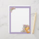 Cute letterhead with teddy bear and flowers with purple frame. Makes a nice baby shower invitation, as well as writing paper.