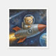 A cute teddy bear wearing a space helmet is flying through the cosmos in a small rocket