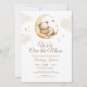 This Baby Shower Invitation features a cute illustration of a teddy bear resting on a yellow moon, with an elegant script type treatment. Personalise it with your event details. A beautiful invitation, perfect for your event!