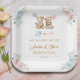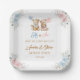 Teddy Bear Gender Reveal Pastel Florals Paper Plate