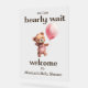 Welcome guests to your girl baby shower with this adorable custom acrylic sign! Featuring a sweet watercolor illustration of a cute teddy bear with a pink balloon, this sign sets the perfect tone for your celebration. The phrase "we can bearly wait" is displayed in elegantly whimsical typography, adding a playful and heartwarming touch. Easily customisable with the parents' names and baby shower date, this high-quality acrylic sign is both durable and stylish, making it a beautiful keepsake long after the celebration. Create a magical first impression - order yours today!