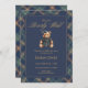 This navy tartan teddy bear invitation features a charming girl bear dressed in classic plaid—perfect for an elegant baby shower theme. Customize all wording easily and download instantly to print or send digitally.