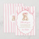Teddy Bear Girls Pink Bow Stripes 1st Birthday Thank You Card