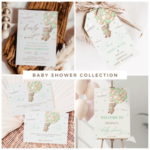 Teddy Bear with Green Balloons & Beige BackgroundDesigned by A S