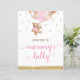 Watercolor Teddy Bear Pink and Rose Gold Balloons Guess How Big Is Mummy's Belly Baby Shower Sign.