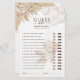 Boho teddy bear baby shower game featuring a simple plain white background, a watercolor boy bear, balloons, rustic bohemian pampas grass, florals, and a "guess who, mummy or daddy" template that is easy to personalise.