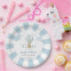 Cute blue watercolor teddy bear flying on hot air balloon baby boy shower party paper plates.