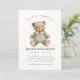 A tender "in loving memory" memorial card featuring a sweet watercolor teddy bear in soft mint green pajamas. This gentle design is perfect for honoring the life of a beloved child. The heartwarming image is surrounded by delicate script that reads "In Loving Memory Of", creating a comforting and heartfelt tribute. The card is designed to offer solace and remembrance during a difficult time, with ample space for personal details and messages.