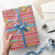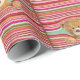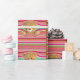 Cute brown teddy bear in warped pink and green horizontal stripes.