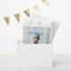 Create unique baby shower favour bags featuring blue colours, and a casual chic teddy bear with gingham and balloons. The front includes the event name and guest of honour that you can edit for your needs. Bear Jean Baby design. Use the template to create a special, personalised favour bags for your baby shower.