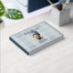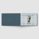Create unique baby shower foil guestbook featuring blue colours, and a casual chic teddy bear with gingham and balloons. Bear Jean Baby design on the front along with the name of the event and the guest of honour, mum-to-be. The side has foil text as well as the back. Use the template to create a special, personalised foil guestbook for your baby shower.