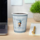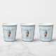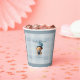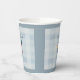 Create unique baby shower paper cups featuring blue colours, and a casual chic teddy bear with gingham and balloons. The front and back includes the event name and guest of honour that you can edit for your needs. Bear Jean Baby design. Use the template to create special, personalised paper cups for your baby shower.
