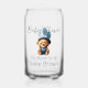 Create a unique baby shower drinking glass featuring blue colours, and a casual chic teddy bear. The front and back include the event name and guest of honour that you can edit for your needs. Bear Jean Baby design. Use the template to create a special, personalised drinking glass for your baby shower.