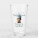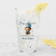 Create a unique baby shower glass featuring blue colours, and a casual chic teddy bear. The front and back include the event name and guest of honour that you can edit for your needs. Bear Jean Baby design. Use the template to create a special, personalised drinking glass for your baby shower.