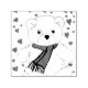 An adorable marker drawing of a white teddy bear in a red scarf surrounded by bright red hearts.