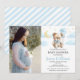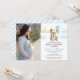 Watercolor blue gold cute celestial moon and stars teddy bear holding balloons baby boy shower photo invitation, photo card.
