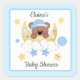 Teddy Bear Moon Clouds Stars Baby Boy Shower Square Sticker