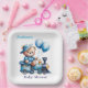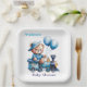 Teddy Bear On a Blue Train Boy Baby Shower Paper Plate