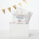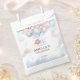A charming baby shower favor bag featuring a sweet teddy bear resting on a fluffy cloud beneath a canopy of blue and blush balloons with soft star accents. The dreamy watercolor design creates a gentle, elegant look that is perfect for packaging treats, candy, and small thank you gifts for guests. A lovely choice for a boy baby shower, teddy bear theme party, or pastel baby shower favor table.