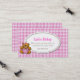 Stylish girl's play date calling card, done in a pink and white plaid pattern. A white oval text area, in the middle, is decorated with a cute cartoon teddy bear, on the bottom left. Personalise the text for yourself, as a mummy card, or for your child. Great way to stay in touch with other moms and arrange play dates, birthday parties, and baby sitting co-ops.