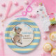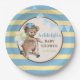 Teddy Bear on Scooter, Striped Baby Shower Paper Plate