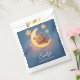 Send your guests home with love and a smile using these dreamy paper favor bags featuring a sleepy teddy bear resting on a crescent moon, surrounded by golden stars and soft pastel clouds. Personalized with the baby’s name, these bags are ideal for sweets, cookies, or small thank-you gifts. A magical, gender-neutral detail from the Sleepy Bear Dreams baby shower collection.