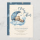 We are Over the Moon Baby Shower Invitation with cute teddy bear sleeping on puffy blue cloud and the half crescent moon and stars. Sweet boy baby shower invitation. Celebrate the arrival of your little one with our charming "We Are Over the Moon" Baby Shower Invitation! Featuring an adorable design of a cuddly teddy bear peacefully sleeping on a fluffy blue cloud, a glowing crescent moon, and twinkling stars, this invitation captures the sweet anticipation of your bundle of joy. The soft pastel tones and whimsical details make it perfect for a gender-neutral celebration. This invitation is perfect for parents-to-be who want a sweet and dreamy theme for their baby shower. It’s also a thoughtful choice for friends or family planning a celebration for a loved one. Gentle blues and yellows create a calming, gender-neutral theme.