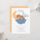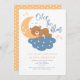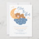 We are Over the Moon Baby Shower Invitation with cute teddy bear sleeping on puffy blue cloud and the half crescent moon. Sweet boy or girl baby shower invitation.