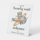 Welcome guests to your boy baby shower with this adorable custom pedestal sign! Featuring a sweet watercolor illustration of a cute teddy bear pilot in his trusty vintage plane, this sign sets the perfect tone for your celebration. The phrase "we can bearly wait" is displayed in elegantly whimsical typography, adding a playful and heartwarming touch. Easily customisable with your name and baby shower date, this sign is both durable and stylish, making it a beautiful keepsake long after the celebration. Create a magical first impression - order yours today!