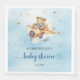 Unleash the charm of your boy baby shower party with the enchantingly designed napkins, graced with the illustration of an adorable baby bear. The bear, tenderly cradling blue and ivory balloons, descends from a sky blue canvas, evoking a sense of whimsical innocence. This charming 'Baby bear with balloons' napkin design perfectly captures the spirit of joyous celebrations, making it an unparalleled choice for creating an eternal memory of your special occasion.