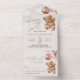 Teddy Bear, Pink Balloons, First Birthday All In One Invitation