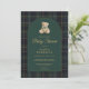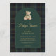 Teddy Bear Plaid Green Blue Tartan Baby Shower Invitation