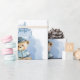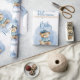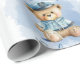 Cute boy teddy bear dressed in a blue policeman uniform with “Baby” text. Repeat pattern gift wrap. Perfect for all your baby boy shower gifts. The perfect baby shower wrapping paper is simple & sweet.