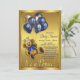 Teddy bear baby shower invitation with adorable teddy bear prince and pretty royal blue and gold balloons on a beautiful gold background. This teddy bear invitation is easily customized for your event by simply adding your details.