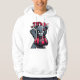 A white hoodie with a dark teddy bear graphic and modern graffiti details, giving a youthful and eye-catching look.