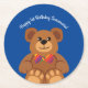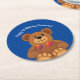 Teddy Bear Rainbow Cute 1st Birthday Party Round Paper Coaster
