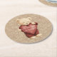 Teddy Bear Red Heart Gold Glitter Round Paper Coaster