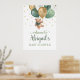 Watercolor Teddy Bear Sage Green and Gold Balloons Welcome Baby Shower Sign.