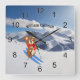 Teddy Bear Skier on snowy mountains Square Wall Clock