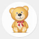 Round sticker shown with a cute teddy bear print. Customise this item or buy as is.
