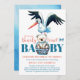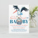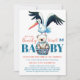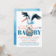 Teddy Bear Stork Bearly There Blue Baby Shower Invitation
