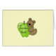 An adorable brown bear holds a big green apple that reads "Teachers Rock! on teacher theme T-shirts, mugs, cards, stickers, tote bags, mousepads, and other items that show teacher appreciation!