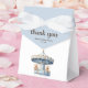 Say "thank you" in the sweetest way with these custom twin boy baby shower favour boxes! Featuring "thank you" in elegantly whimsical typography and a charming watercolor illustration of two teddy bears sitting on a blue carousel, these favour boxes add a lovely storybook touch to your celebration. Perfect for holding small treats, candies, or keepsakes for guests, and easily customisable with name and baby shower date, these adorable favour boxes are the perfect way to send guests home with a little piece of your special day.