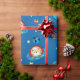 A cute teddy bear in a flying saucer UFO is zooming around in outer space. Adorable wrapping paper for your little astronaut!