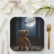 Teddy Bear Watching Santa Claus and Reindeer Paper Plate