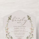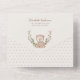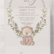 Celebrate the upcoming arrival of the little one with a unique and beautiful boho-themed teddy bear baby shower. Invite your loved ones with a special invitation featuring a cute watercolor bear accented by a beautiful wildflower wreath, and the phrase "We Can Bearly Wait!" This all in on invitation includes a detachable diaper raffle card. Let this special occasion be the start of something beautiful and memorable.