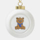 Teddy bear wearing a blue scarf ceramic ball christmas ornament