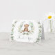 This elegant design features a cute teddy bear holding a sage green heart-shaped balloon framed with gorgeous watercolor greenery wreath